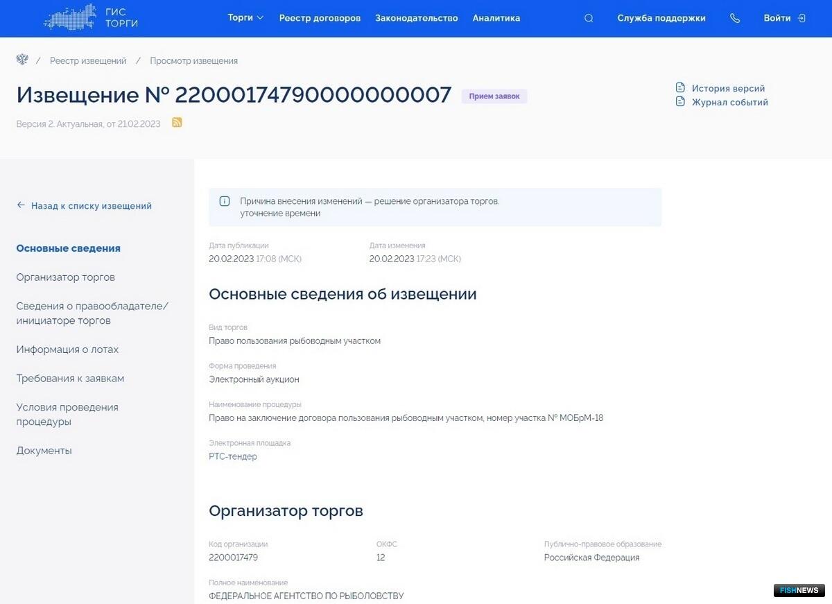 Морской рыбоводный участок в Мурманской области у северного побережья Кольского полуострова выставлен на электронный аукцион. Стартовая цена лота — 780 тыс. рублей, заявки принимаются до 22 марта.